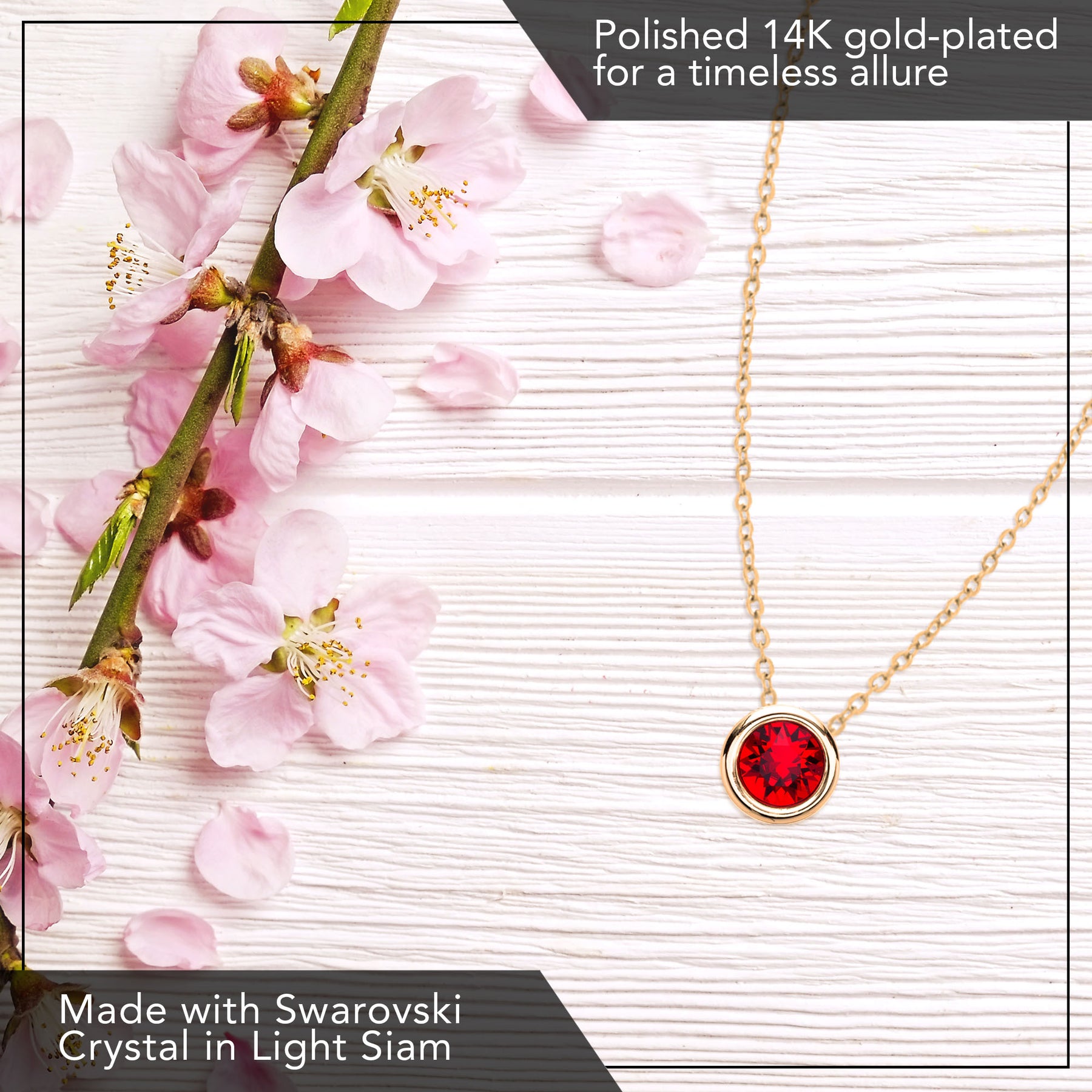 Crystal Colors - Gold Plated Swarovski Light Siam Crystal Birthstone Necklace