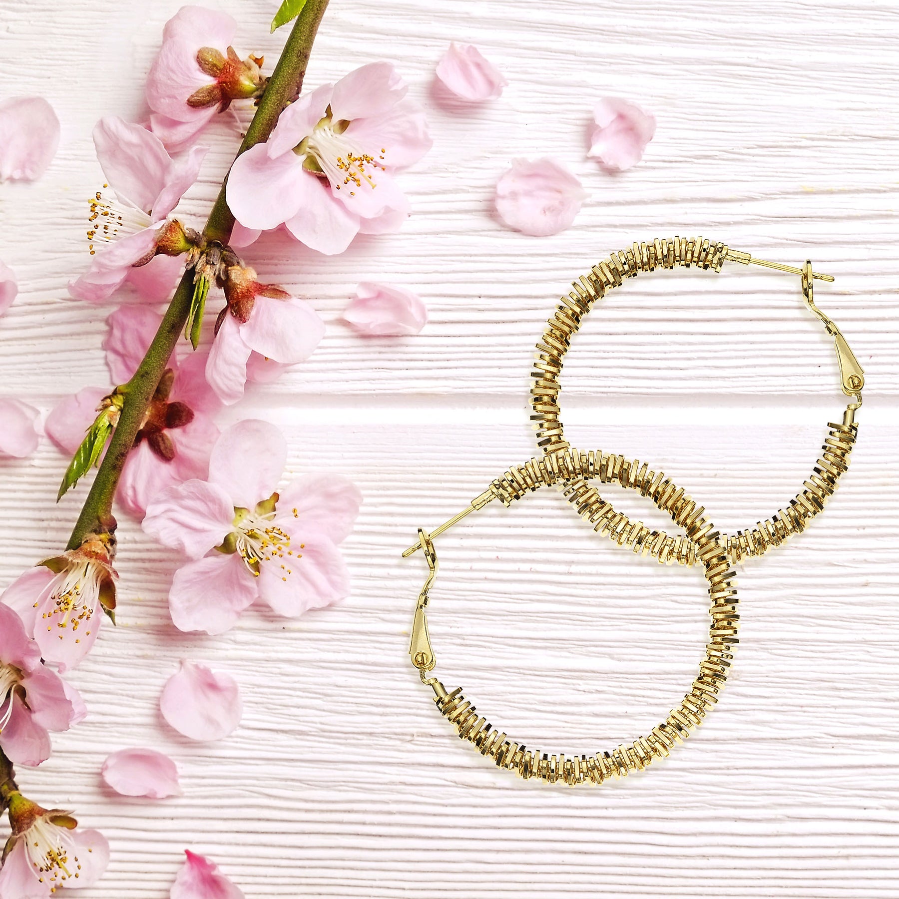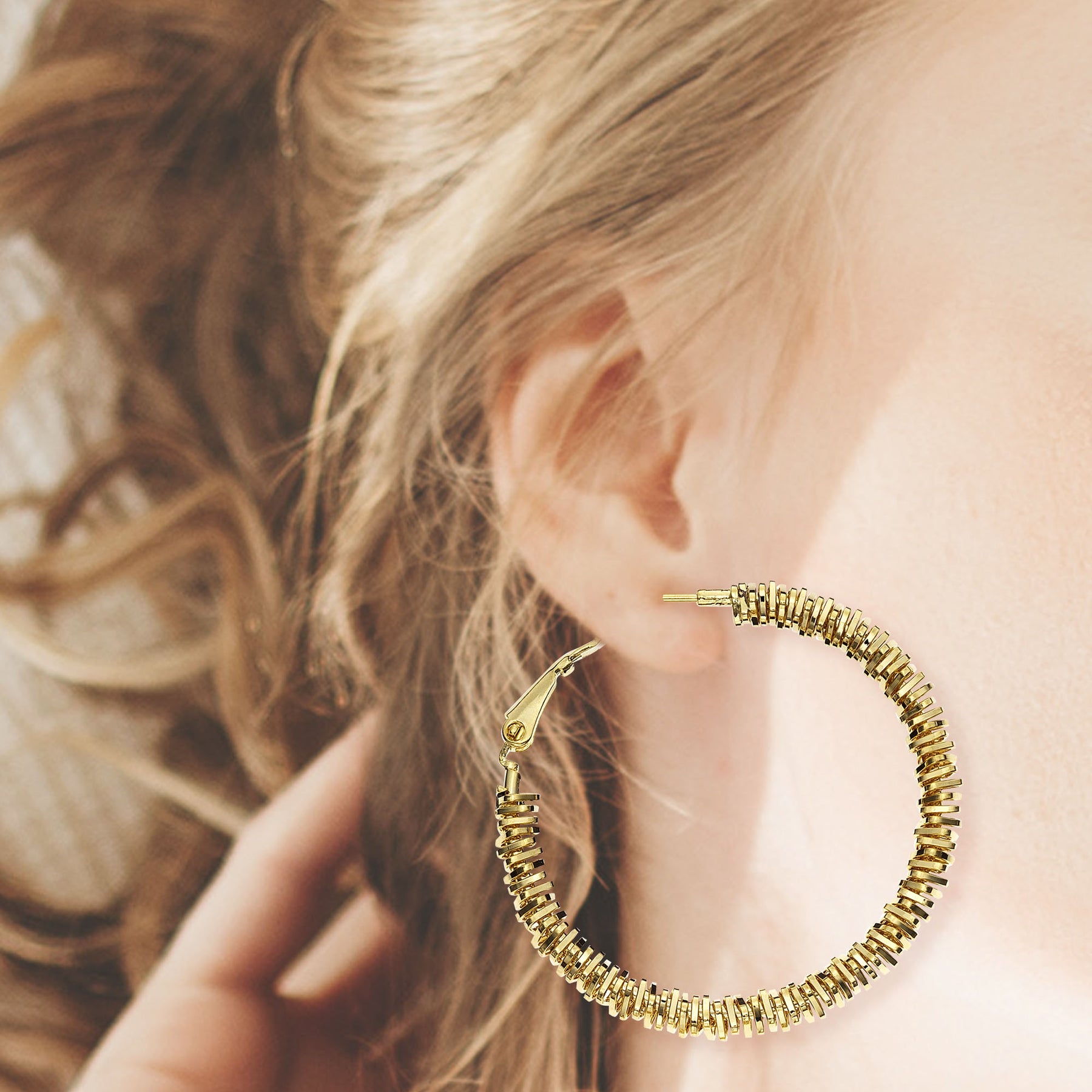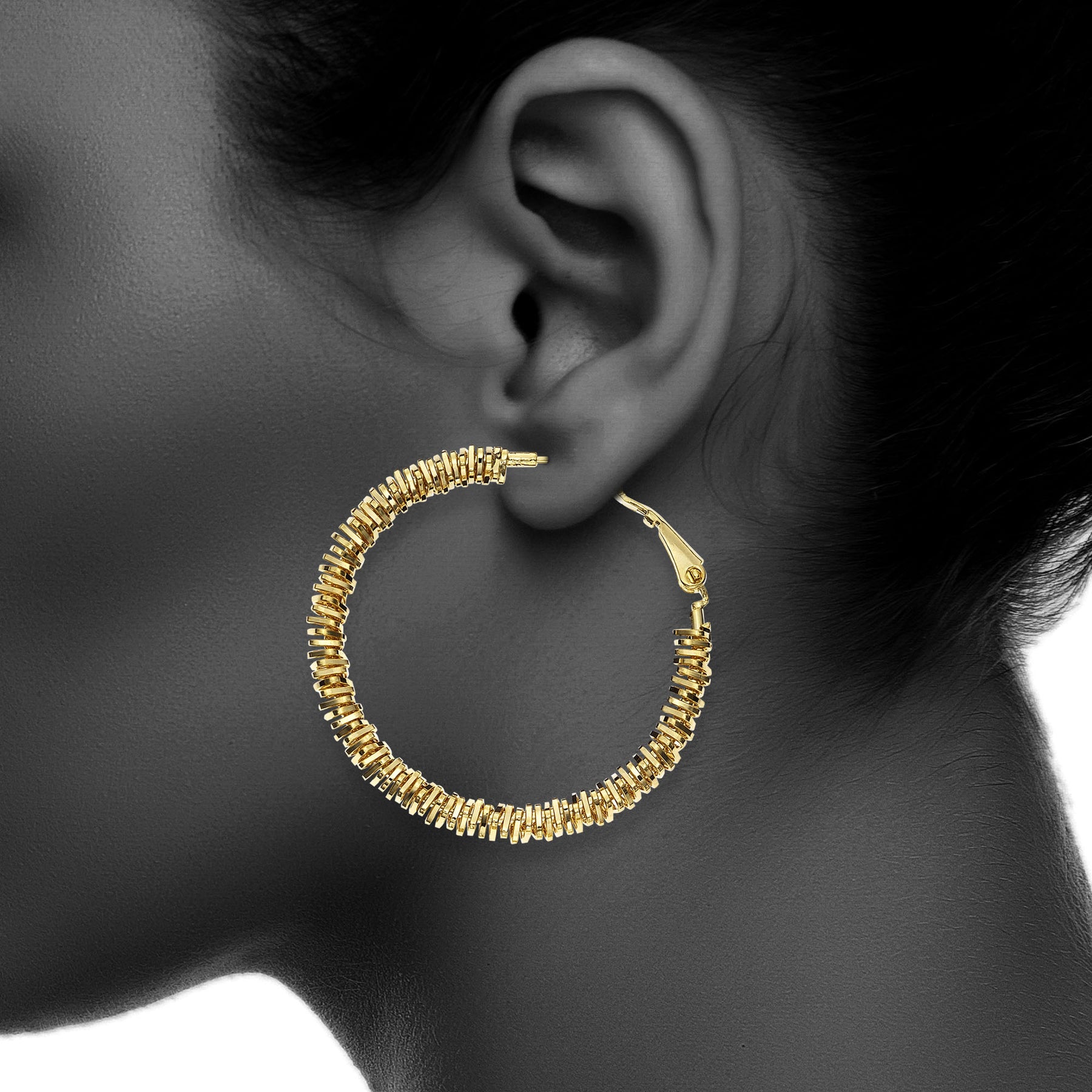 Fine Faux - 50mm 14KT Gold Plated Diamond Cut Coil Hoop