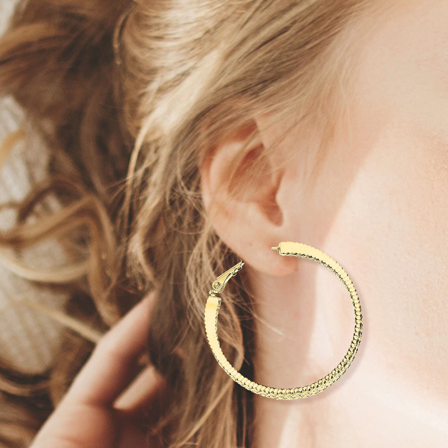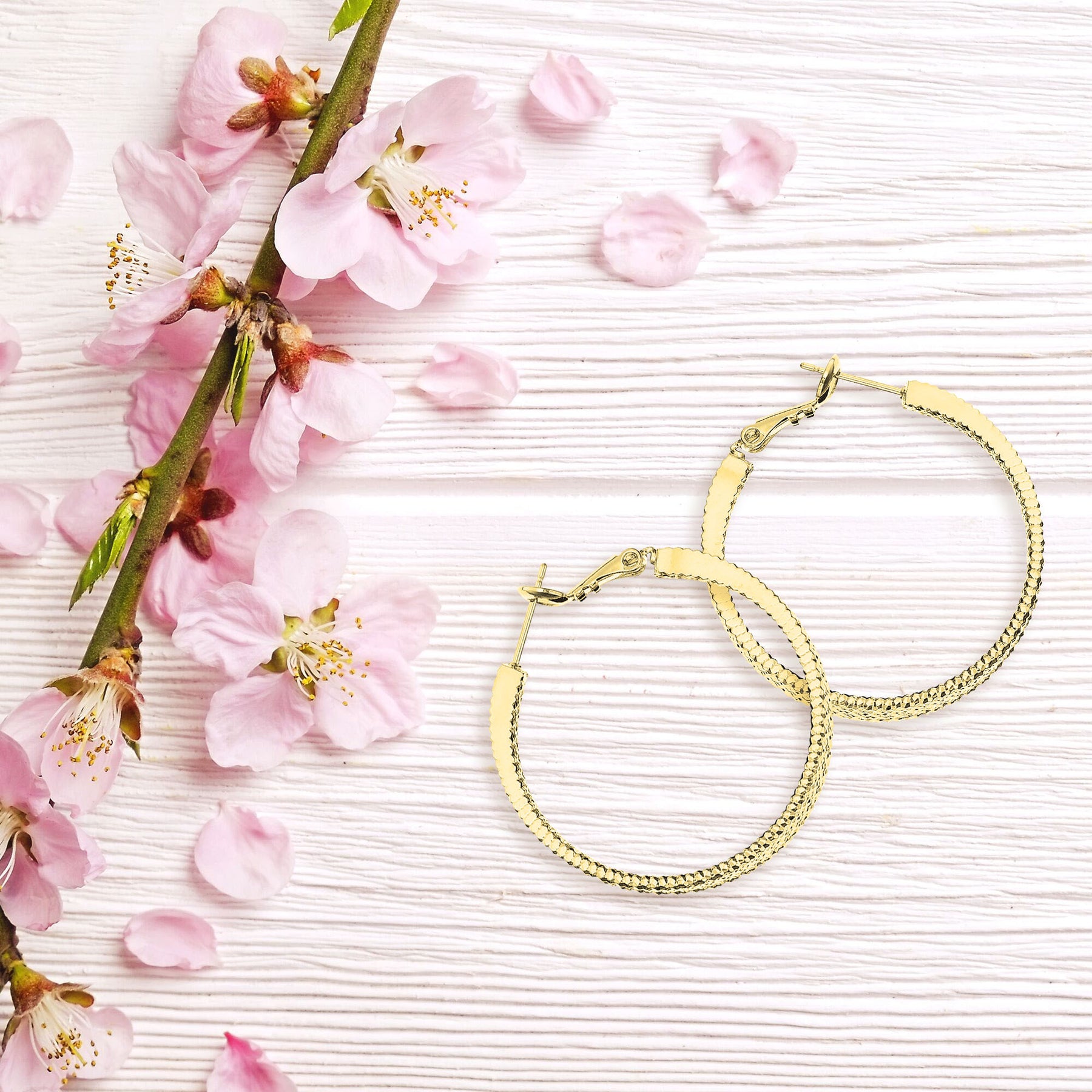 Fine Faux - 30mm 14kt Gold Plated 5 Row Tapered Hoop with Diamond Cut