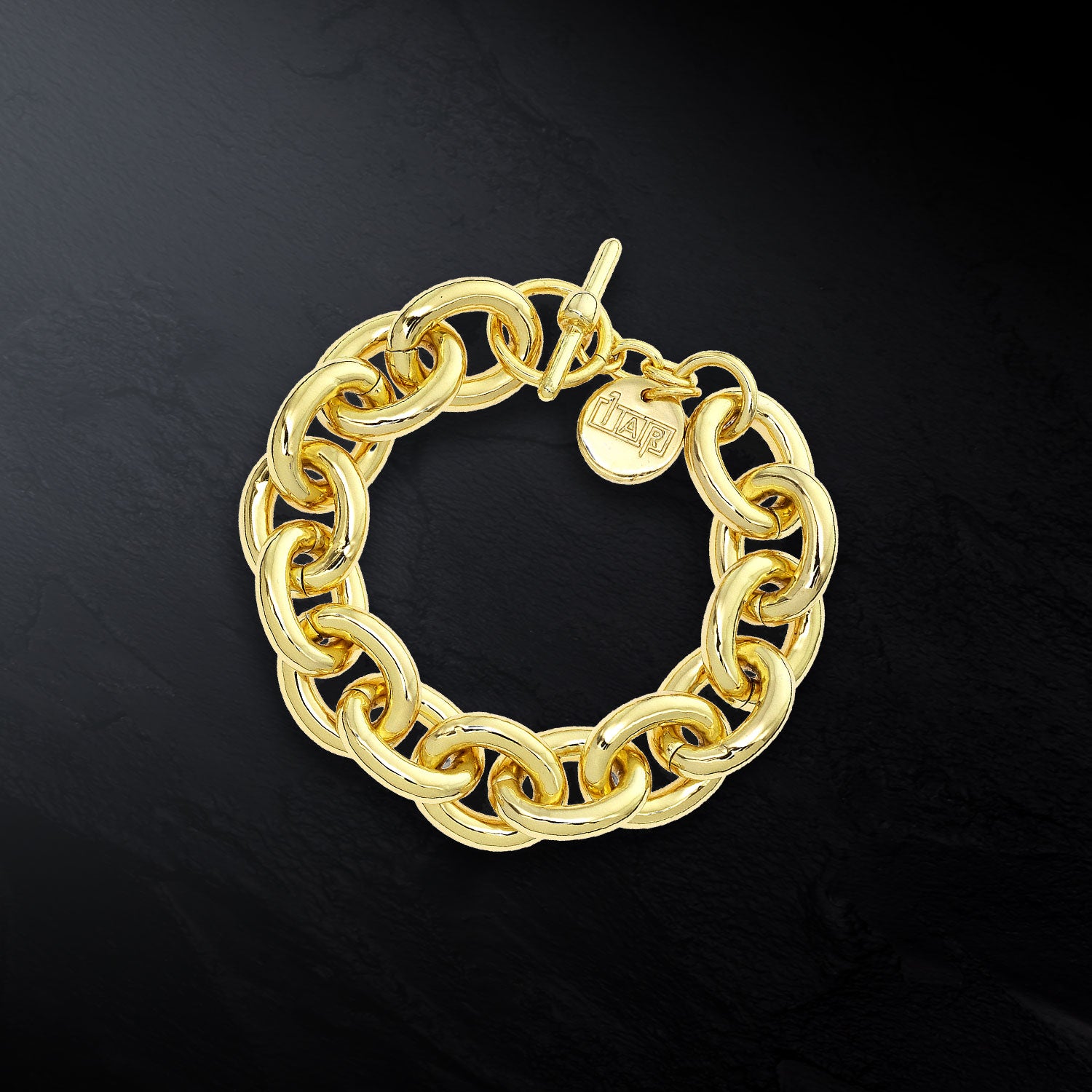 1AR by UnoAerre - 18kt gold plated oval anchor link chain bracelet with toggle