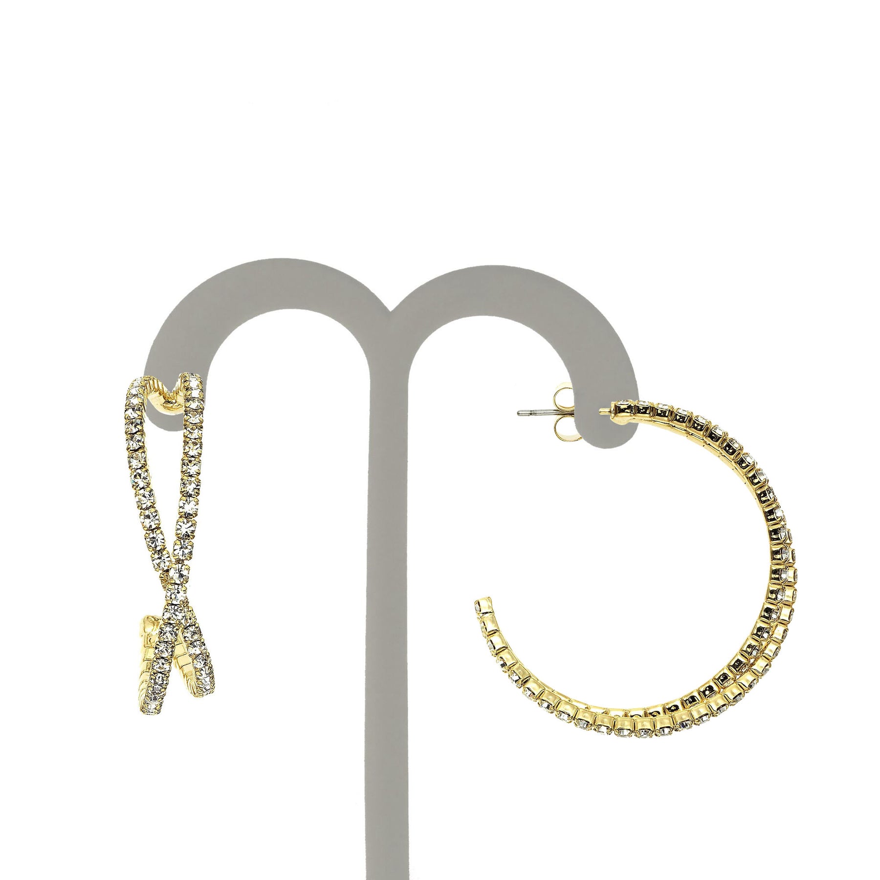 OroClone - Yellow Gold Plated Crystal 35mm Bypass Earring