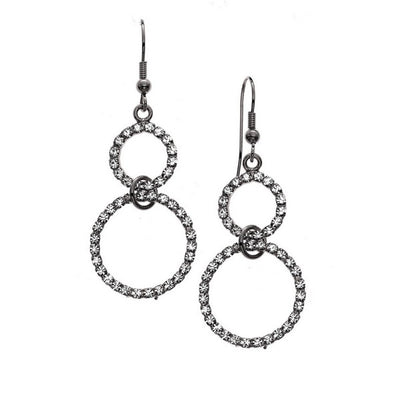 OroClone - Black Rhodium Plated Crystal Two Circle Drop Earring