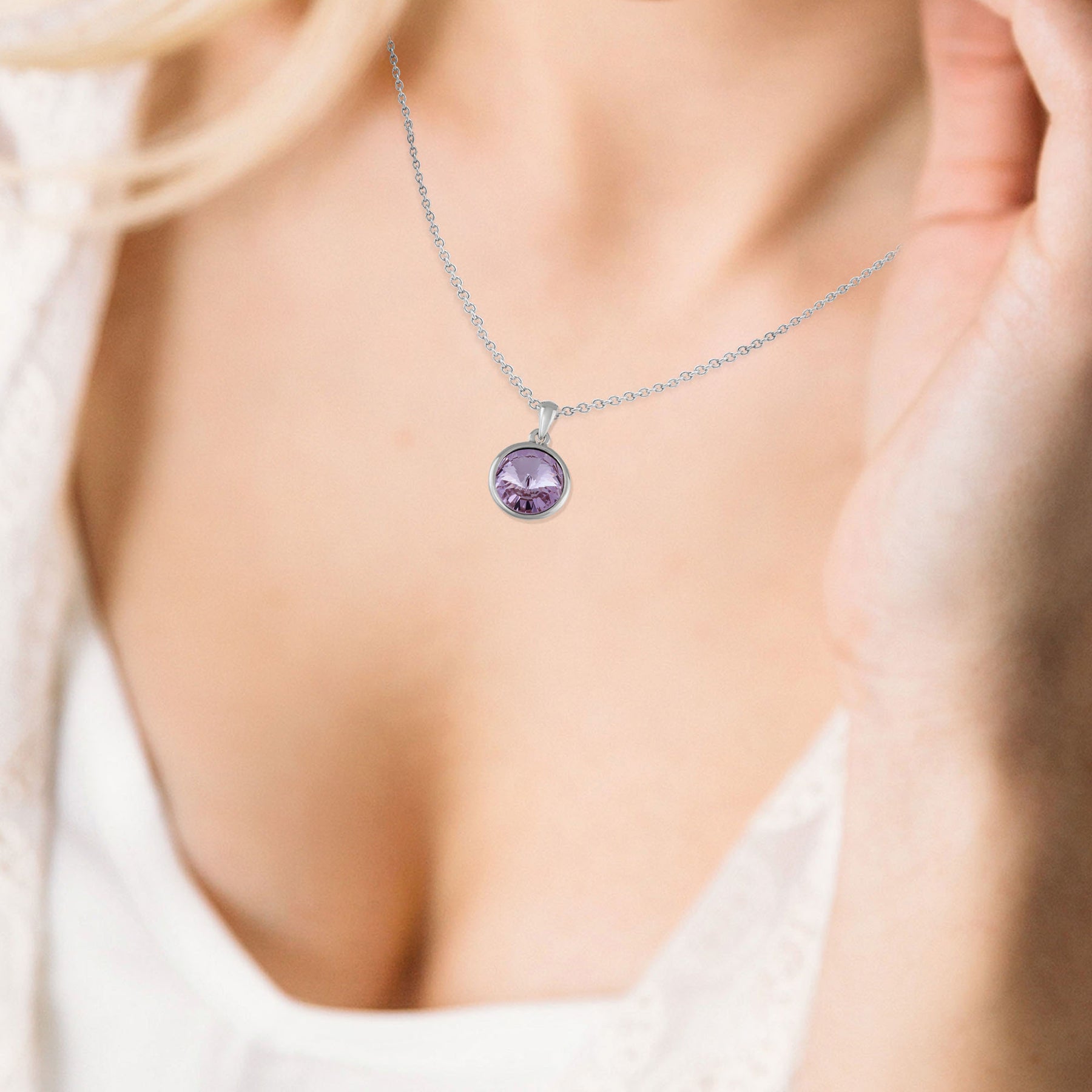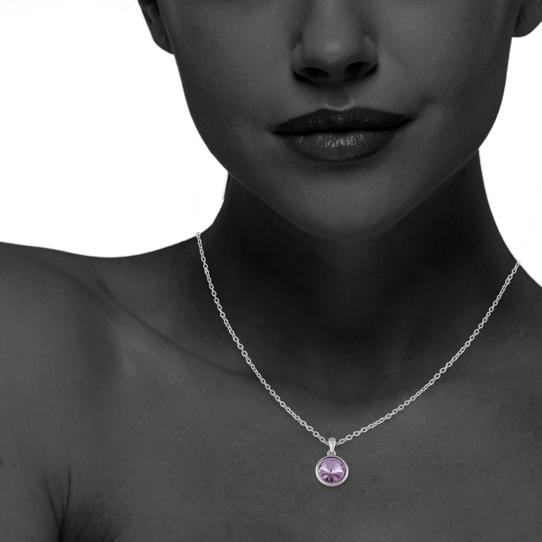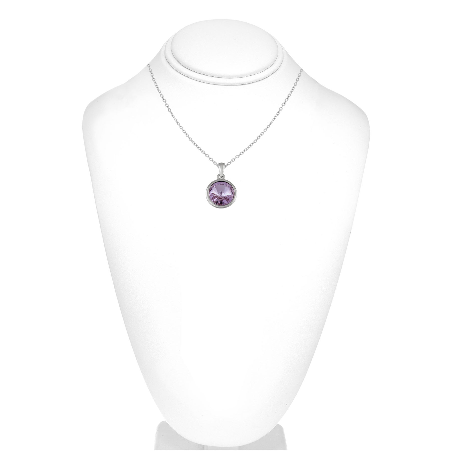 Rhodium Plated 12mm Bezel Set Violet Swarovski Crystal Pendant Necklace