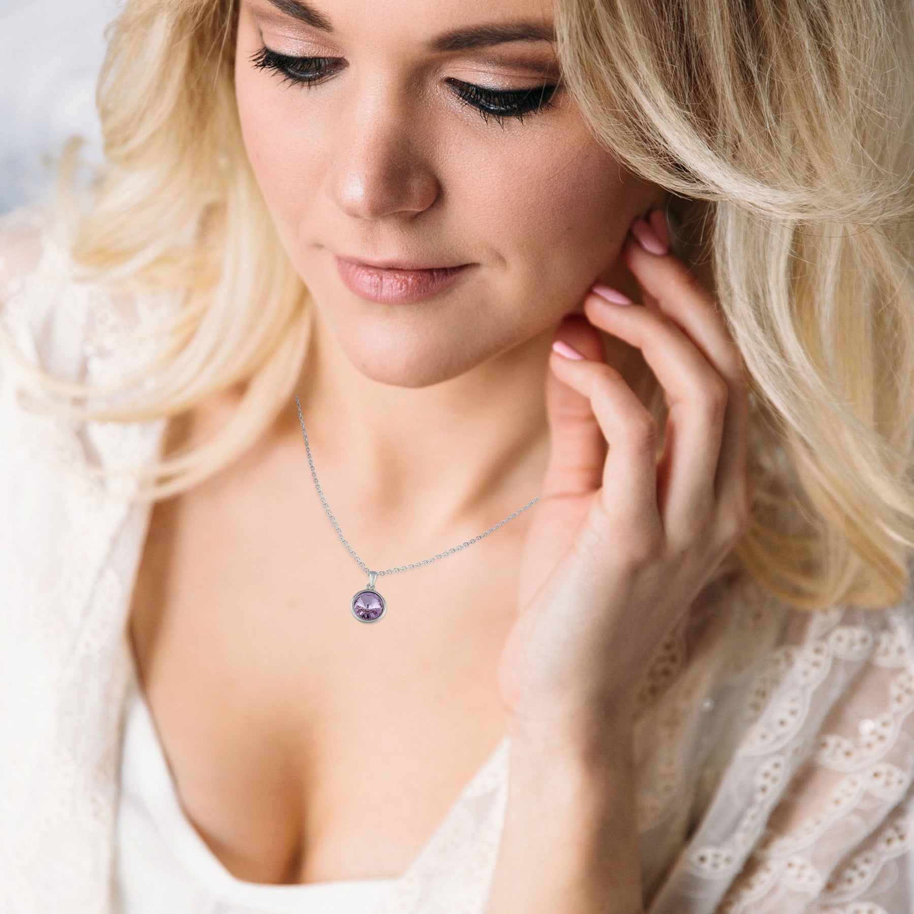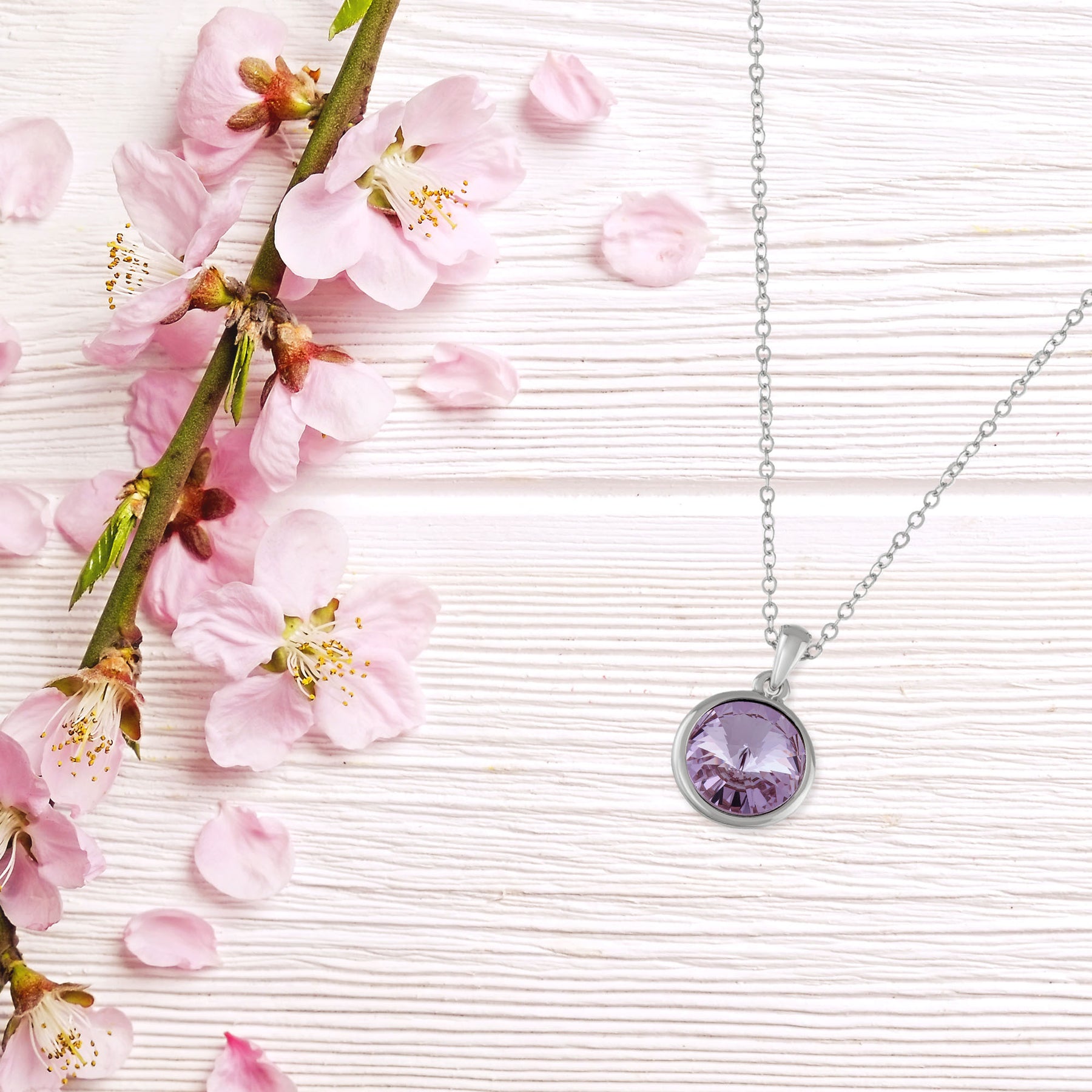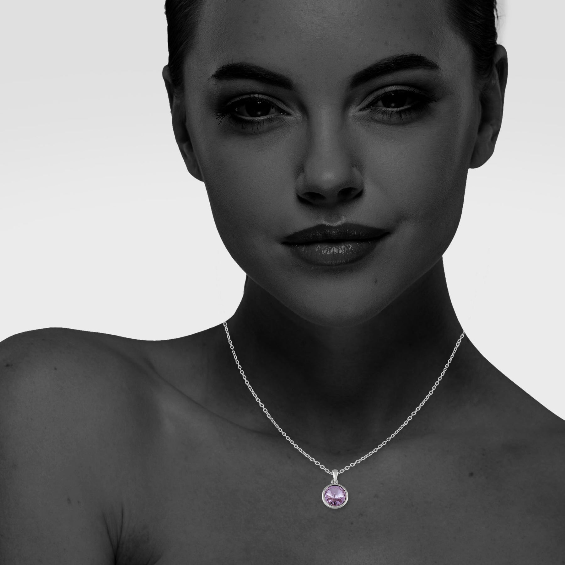 Rhodium Plated 12mm Bezel Set Violet Swarovski Crystal Pendant Necklace