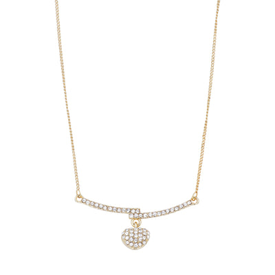 OroClone - 14kt Gold Plated Crystal Curved Bar with Heart Dangle Pendant Necklace