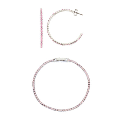OroClone - Rhodium Plated 2pcs Bracelet & 35mm Hoop Box Set - Pink Opal Crystal Components: J00224/PKO | YJB-1006/RH/POP J00192/35/PKO | YJE-1003/RH/POP