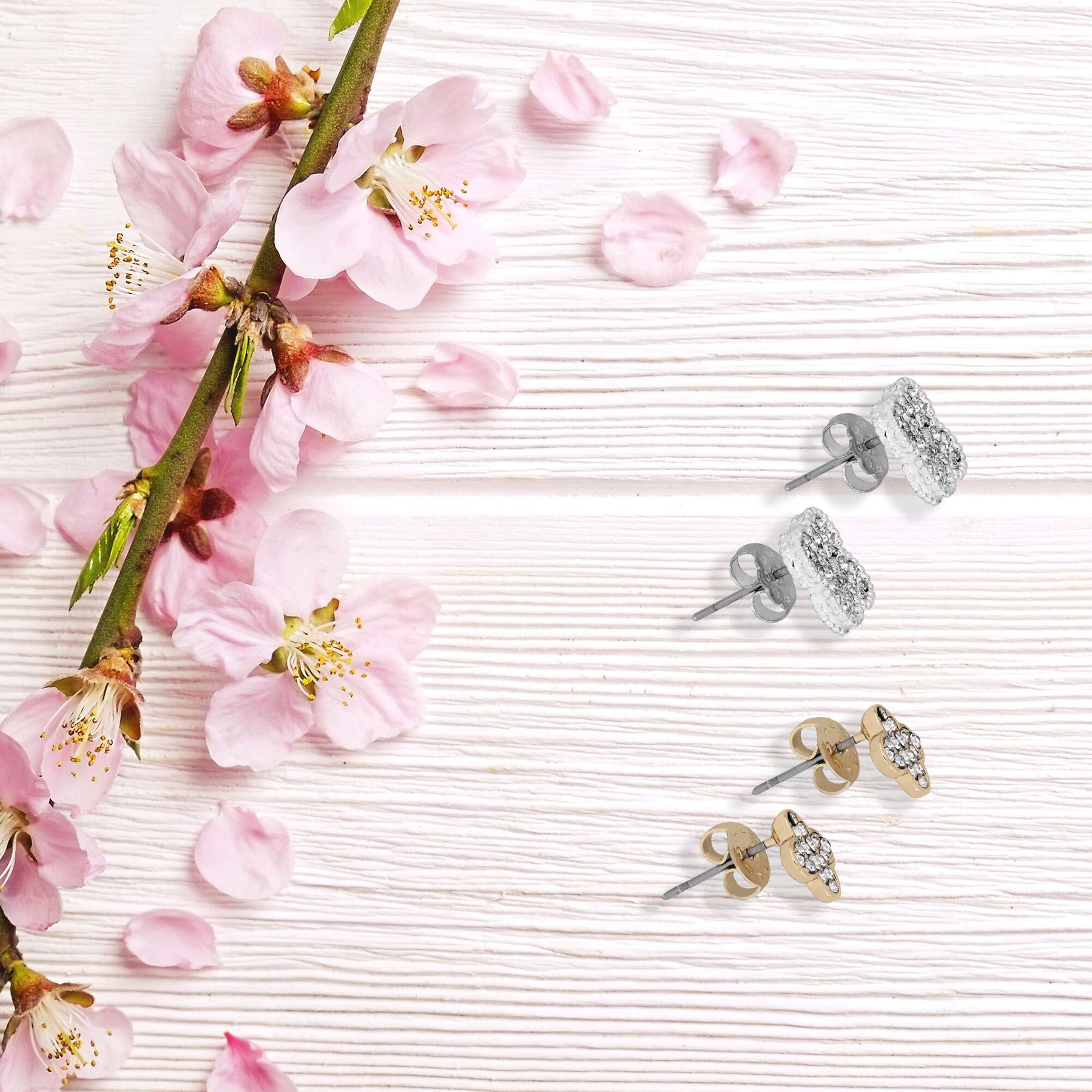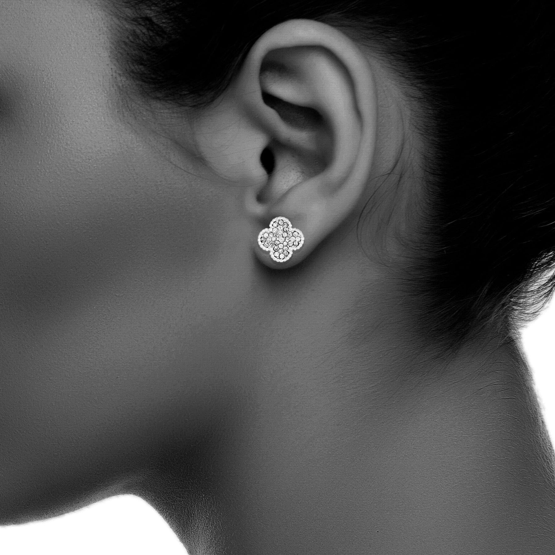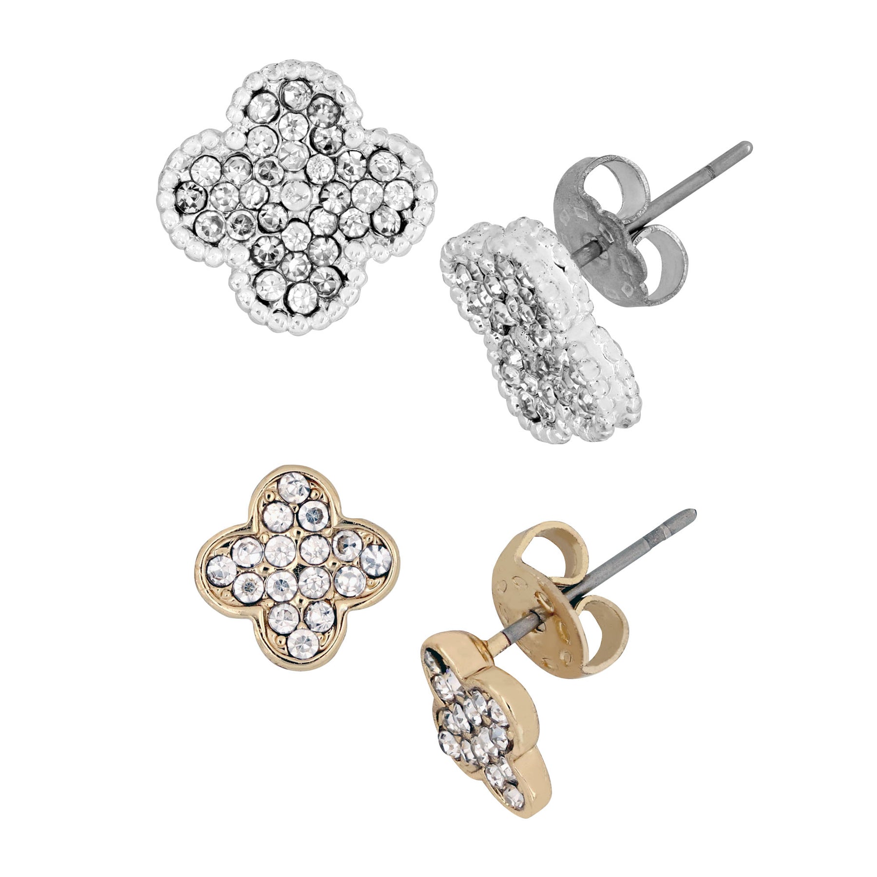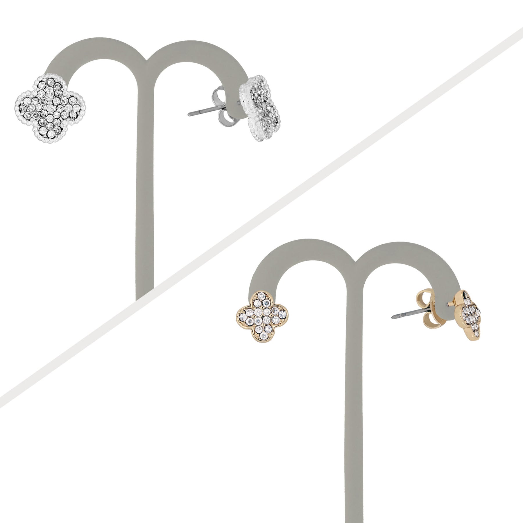 Crystal Colors - Rhodium and 14kt Gold Plated Clover Crystal Studded Earring Set