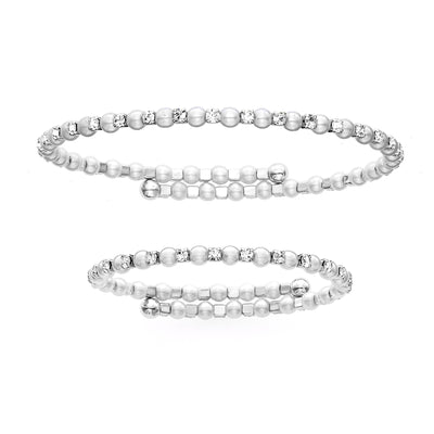 OroClone - Mother Daughter Set: Rhodium Plated Single Row Bangle with Simulated White Pearl and Crystal