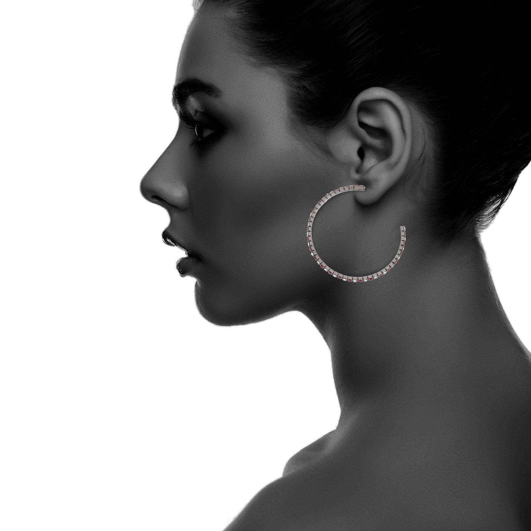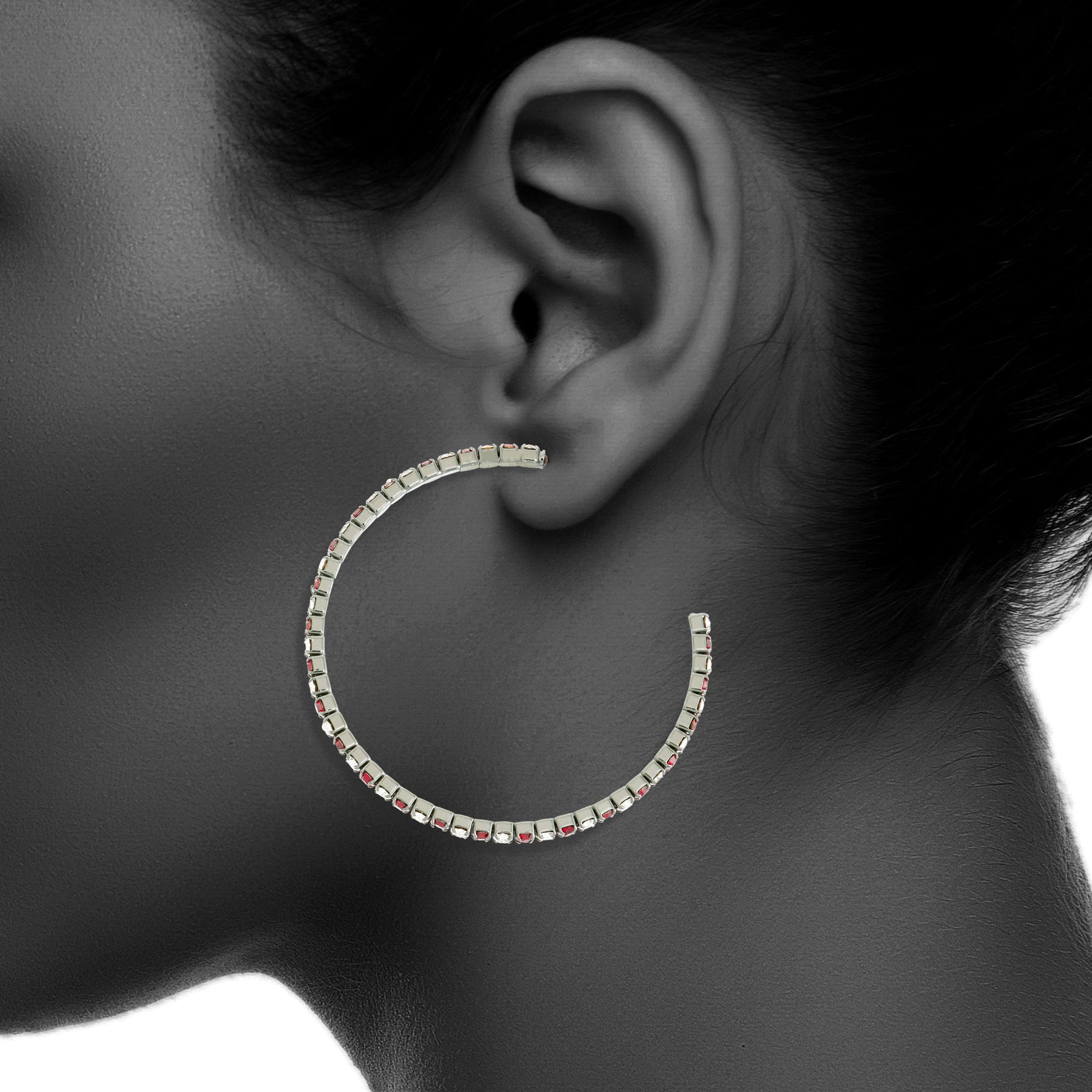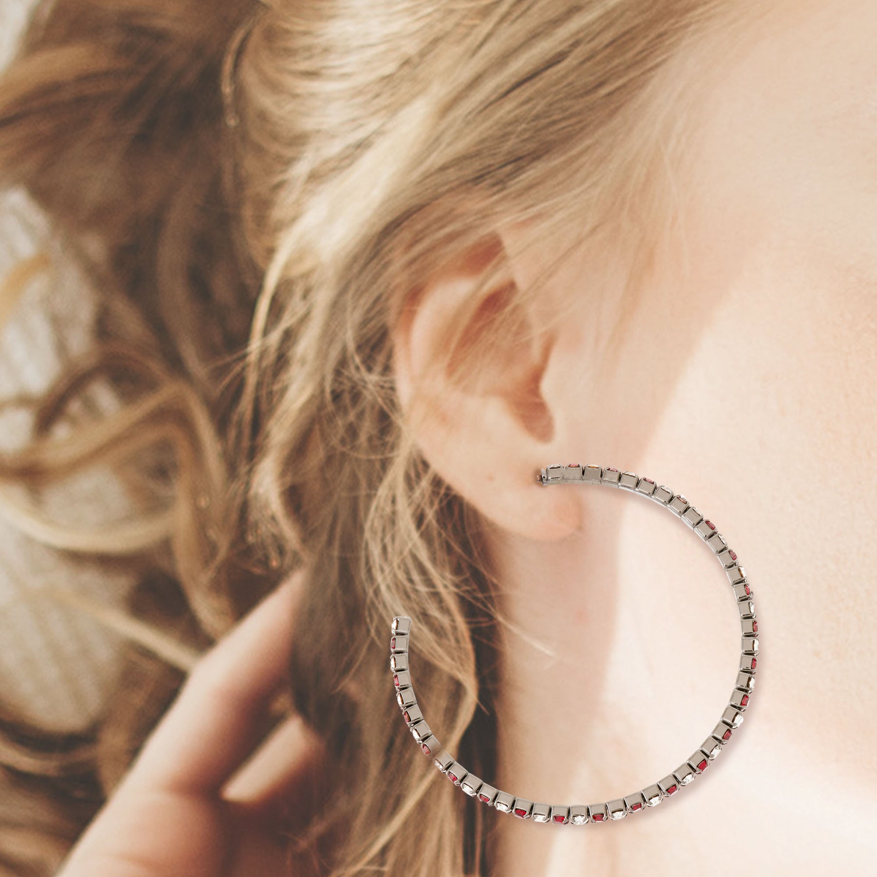 OroClone - Black Rhodium Plated 45mm J-Hoop Earring in Siam and White Crystal Combination