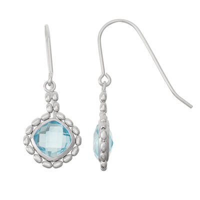 Laurium Lynx - Sterling Silver Beads Earring with Blue Topaz Square Stone
