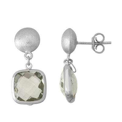 Laurium Lynx - Sterling Silver Bead and Bezel Square drop Earring with Green Amethyst Gemstone