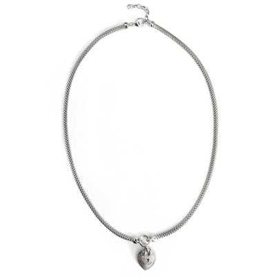 Sterling Silver Sterling Silver Rhodium Plated Popcorn chain Necklace with Closed Heart Charm and Heart with Lock charm with CZ