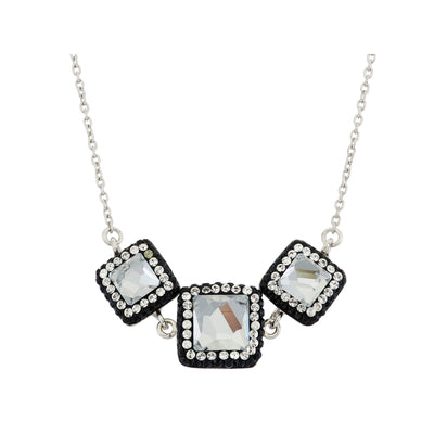 Giorgio Argento - Rhodium Plated Sterling Silver Multiple Square Opaque Swarovski With Black Pave Crystal Pendant Necklace