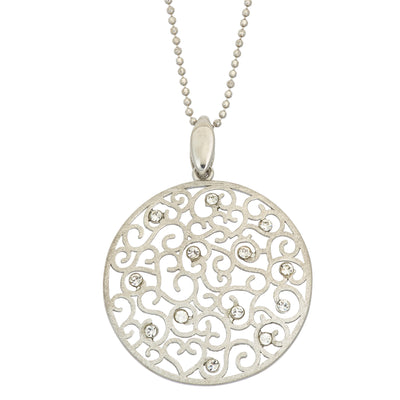 Giorgio Argento - Rhodium Plated Sterling Silver Matte Finished Heart Filigree Round with Crystal Accent Pendant with Chain
