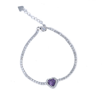 Giorgio Argento - Rhodium Plated Sterling Silver CZ Bracelet with Amethyst CZ Heart Halo